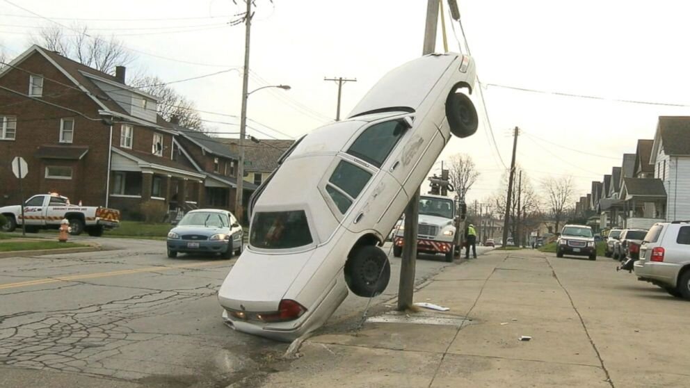 Если говорить более подробно, то алгоритм подготовки к автозапуску машины с механической коробкой передач должен выглядеть следующим образом: необходимо рычаг МКПП перевести в положение "нейтраль", поставить ручной тормоз, нажать на брелоке кнопку отвечающую за постановку на автозапуск. Этот алгоритм обеспечит водителя от "забывания" оставлять машину на передаче без ручного тормоза. Иначе последствия могут быть как на фото. Поэтому доверяйте установку автосигнализаций с автозапуском профессионалам.