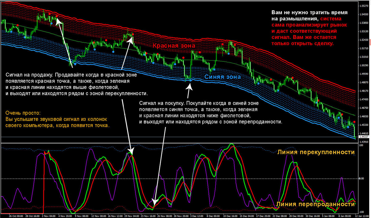 Достаточно важно перед входом в рынок определиться с видом тренда, присутствующего на бирже Forex. К таким видам относятся медвежий и бычий тренды. Именно от данного фактора и зависит тип открываемой сделки. Работа рассматриваемого индикатора базируется на доминировании имеющейся тенденции. О господстве на валютной площадке восходящего тренда говорит бычий рынок, при нём цена склонна к росту.