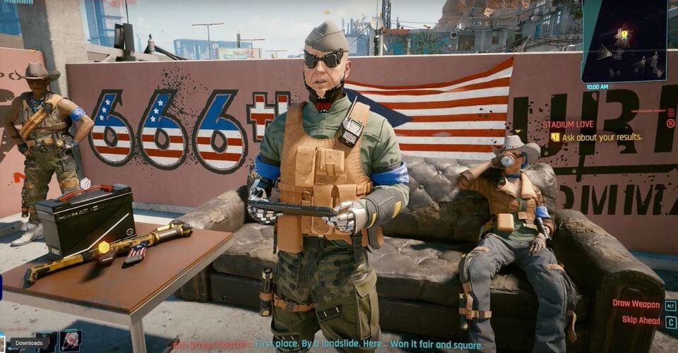 Когда игроки Cyberpunk 2077 обнаруживают банду 6-й улицы на крышах ранчо Коронадо в районе Санто-Доминго, они участвуют в дружеском соревновании по стрельбе. Чтобы сделать ставки более интересными, они настаивают, чтобы Ви делал укол алкоголя перед каждым раундом, что затрудняет прицеливание, и они предоставляют базовый пистолет, который не обеспечивает помощи при прицеливании.