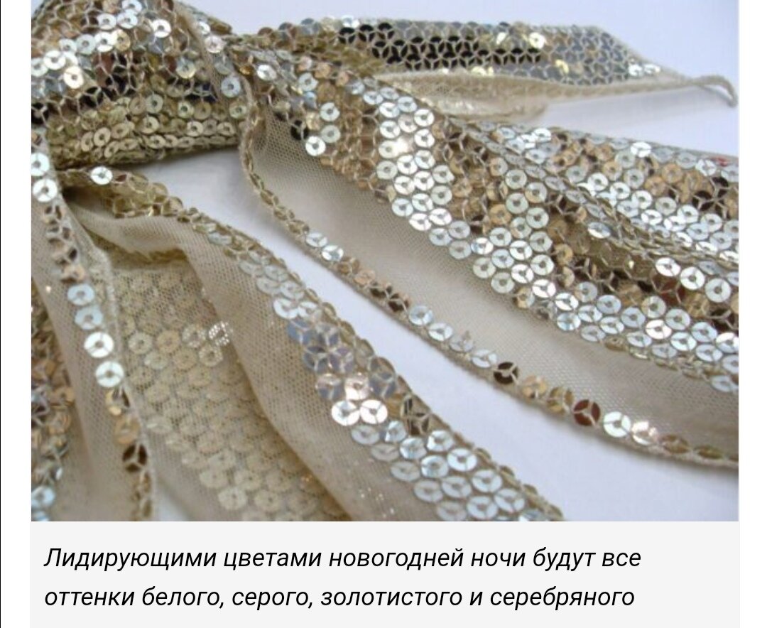 Лидирующими цветами новогодней ночи будут все оттенки белого, серого, золотистого и серебряного. Спокойные пастельные тона можно сочетать с зелёным, коричневым и чёрным цветом.