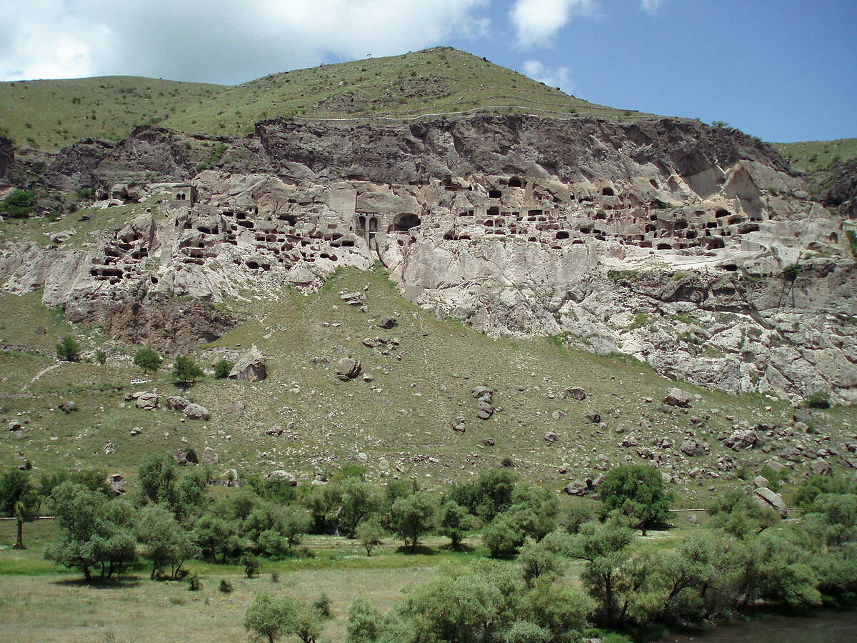 Вардзия – самый известный туристический объект Грузии. Хотя, по сравнению с Уплисцихе, она – почти подросток. Уплисцихе три тысячи лет, а строить Вардзию начали в 12 веке. Однако строить начали не на пустом месте – в горе Эрушети и вообще в скалах вдоль реки Кура было много пещер, которые люди с древности обживали и обустраивали.