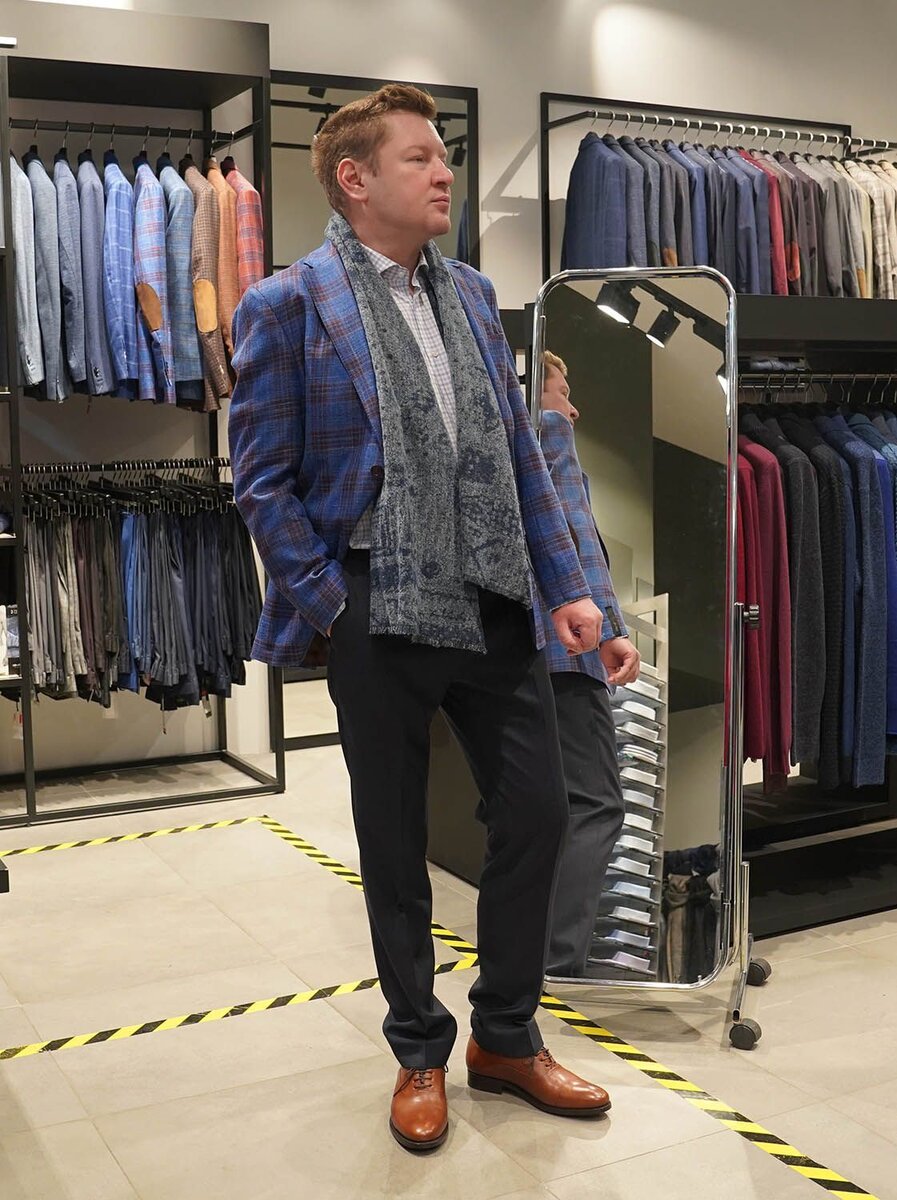 Стилист Анастасия Акатьева с иголочки одела главного редактора «На Новой Риге Life» Эдуарда Дорожкина в бутике BML в The outlet Moscow Архангельское. Слово Эдуарду.