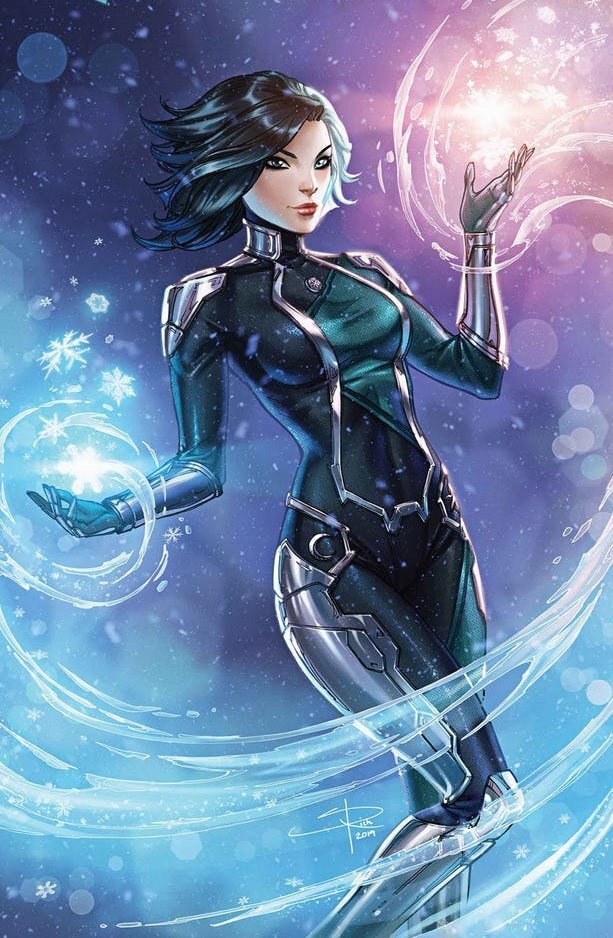 А начать стоит с, появившейся не так давно, K-Pop певицы, талантливой танцовщицы и супергероини из Южной Кореи по имени Соль Хи или же Снежный Месяц. Её способности заключаются в том, что она обладает криокинезом, и может создавать два типа льда. Тёмный, который Соль использует для разрушений, и светлый - для исцеления раненных. Ещё интересно и то, что впервые это героиня появилась не в комиксах, а в бесплатной мобильной игре «Marvel Future Fight».