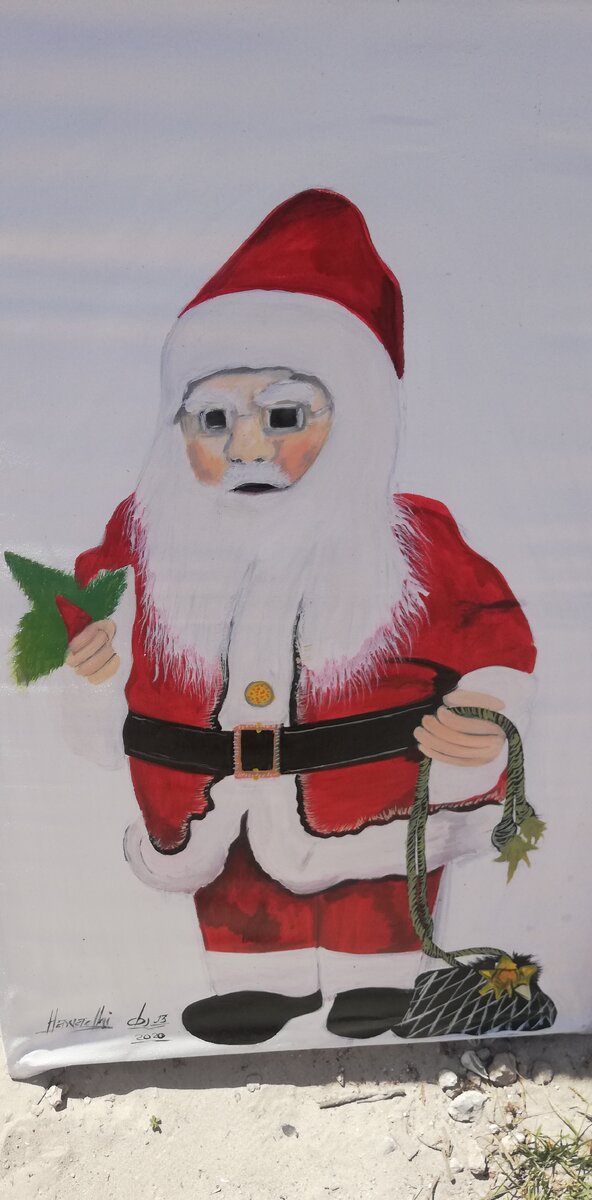 Санта на знаменитом коралловом песке в Падже. Так его видит местный художник. Но Санта посетил и пляжи.