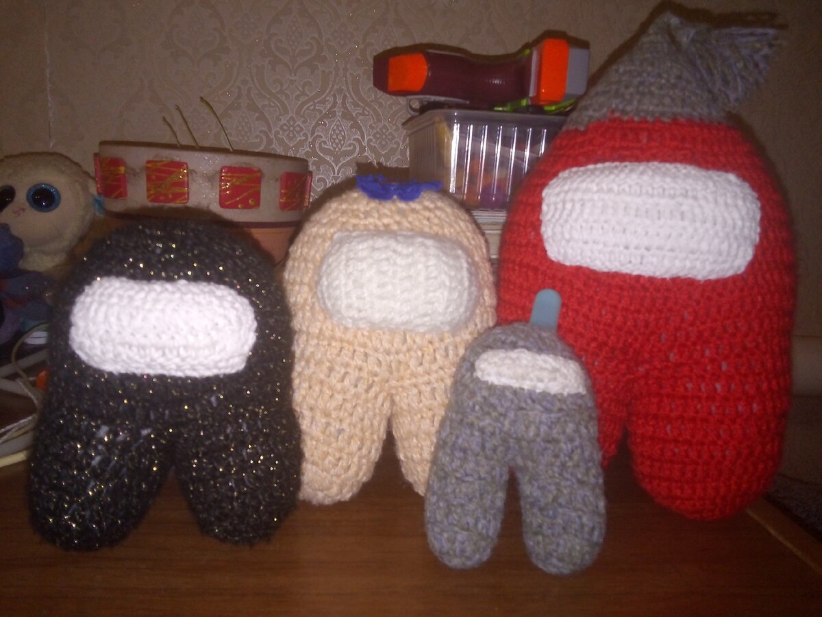 А недавно мальчик-одноклассник начал в школу носить вязанные игрушки, фигурки Амонг Асов. Они с ребятами с таким удовольствием с ними в перемены играют !