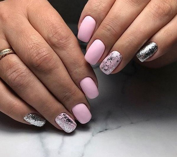 Всю красоту розового цвета можно усилить, если использовать втирку. С помощью неё можно добиться изысканного и торжественного вида. Если честно, то можете делать что хотите и как хотите. Надо просто посидеть и подумать что с чем совместить, чтобы получить оригинальный и неповторимый дизайн.