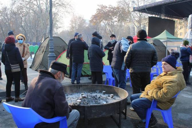 На площади Республики в Ереване продолжается сидячая забастовка движения "За спасение Отечества" с требованием отставки премьер-министра Никола Пашиняна.
