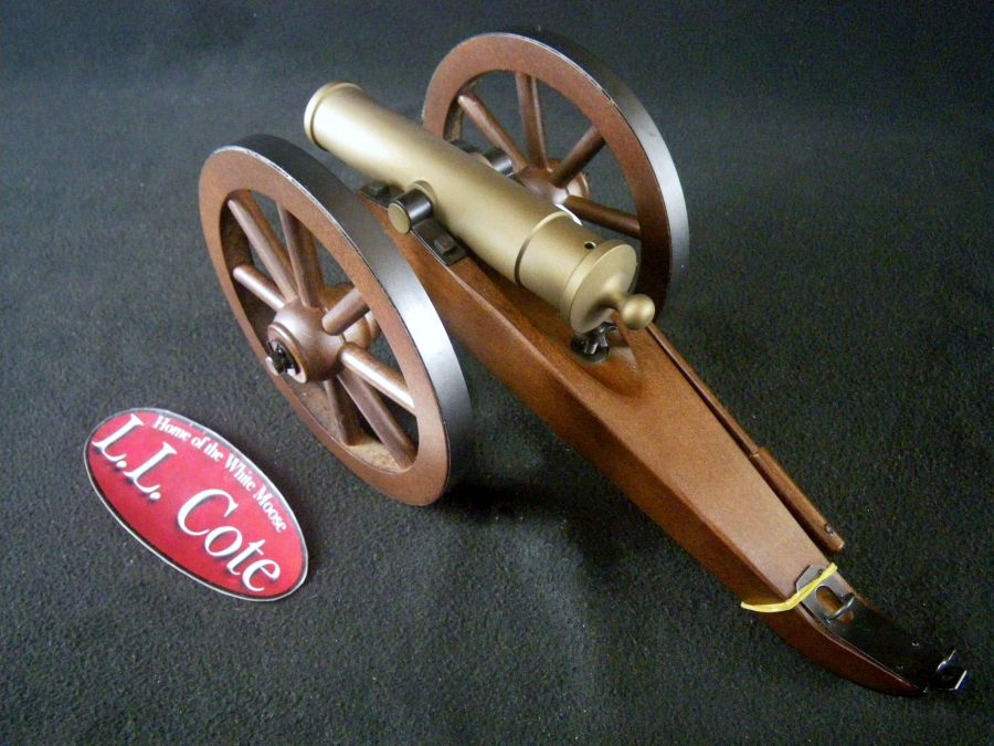 А эта реплика полевой пушки времен Наполеона Третьего, несмотря на несерьезную никелировку, совсем не шутит - те же 0,69 дюйма и вес под 8 килограммов, тут уже можно использовать навески "покрепче", потом не ловя улетающую назад пушку.