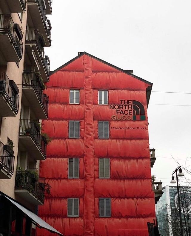 На улице Корсо Гарибальди (Сorso Garibaldi) в центре Милана есть стена размером 176 м2, на которой c 2017 года бренд Gucci размещает картины на стыке маркетинга и современного искусства.