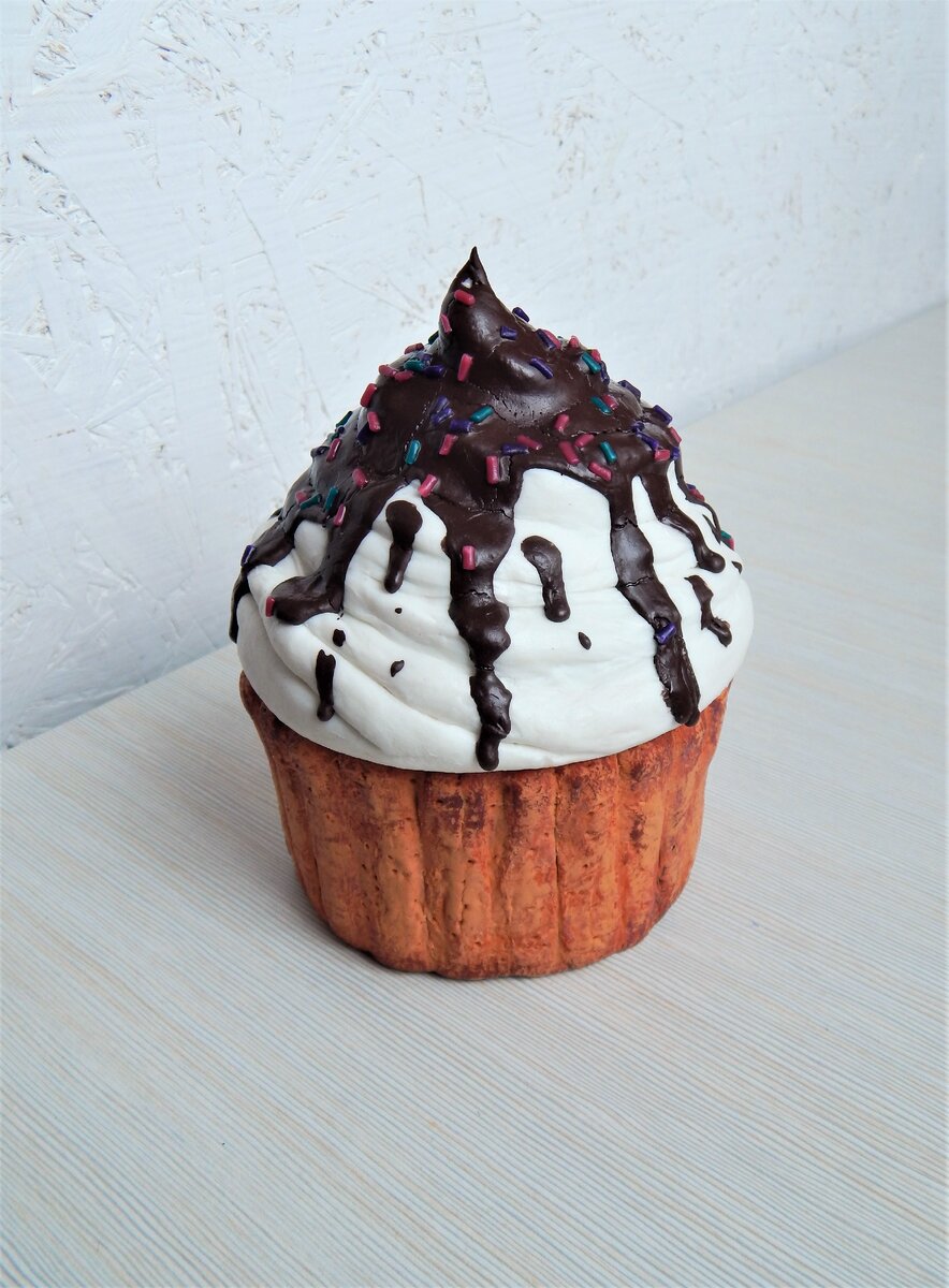 Продолжаю испытывать самодельную массу для лепки. Сегодня леплю крупную поделку. Пирожное получилось примерно 12*9 см.