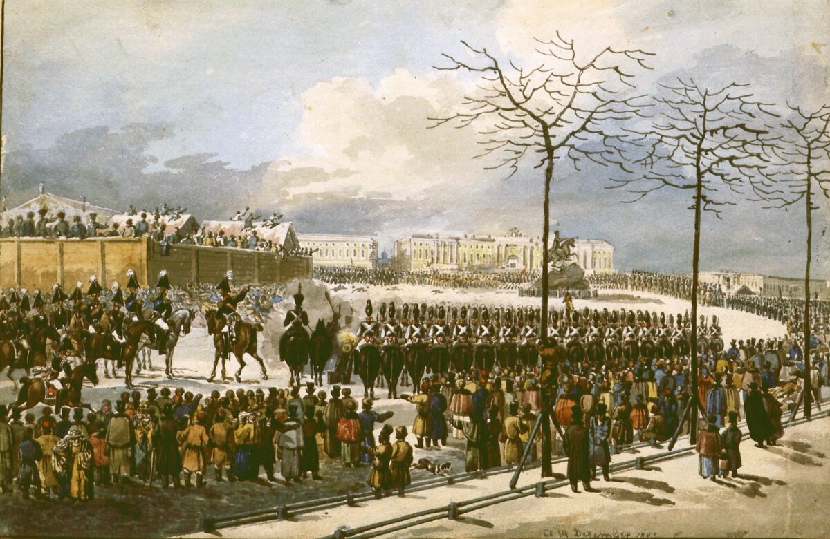 Не хотелось бы менять знаки с положительного на другие, но что делать в контексте современных майданов и переворотов? Ведь, пусть со оговорками, но декабрьское выступление – первый русский майдан. 1. Публичное психоделическое массовое выступление на площади – символе власти (Сенатская) рядом с другим символом власти - Памятником Петра Первого, «Медным всадником», - чтобы было понятно, что на что меняем. 2. Провоцирующиее убийство (Милорадовича), делающее солдат заложниками событий (отступать некуда). 3. Майданный обман – свержение под видом восстановления правильного монарха – Константина, среднего брата, который по династической логике должен взойти на престол, но завещание было на Николая, о чём мало на тот момент кто знал.