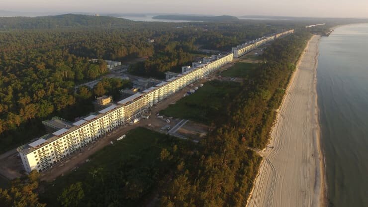 В Германии, на острове Рюген, есть место под названием "Узкая пустошь" - это перешеек между Балтийским морем и Малым Ясмундским заливом. Место было туристическим для немцев с давних времён, но знаменитым его сделало строительство здесь большого курорта в 30-х годах прошлого века. Адольф Гитлер, который тогда был у власти в Германии, хотел сделать здесь курорт мечты.