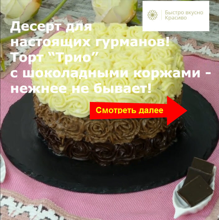 Посмотрите ВИДЕО РЕЦЕПТ как приготовить Торт “Трио” с шоколадными коржами - нежнее не бывает!