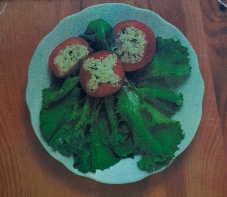 Сыр натереть на мелкой терке и перемешать с мелкорубленым чесноком и перцем. Этим фаршем начинить помидоры. Подать к столу на курчавом листовом салате. Это не только необычайно вкусно, но и очень