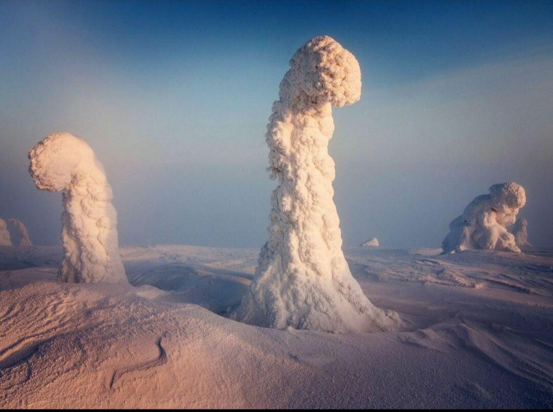 А знаете ли вы, что Из-за экстремально низких температур и огромного количества снега в ветвях, деревья в Финляндии иногда превращаются в сюрреалистические скульптуры, из-за чего финские леса выглядят как пейзажи с других планет.
