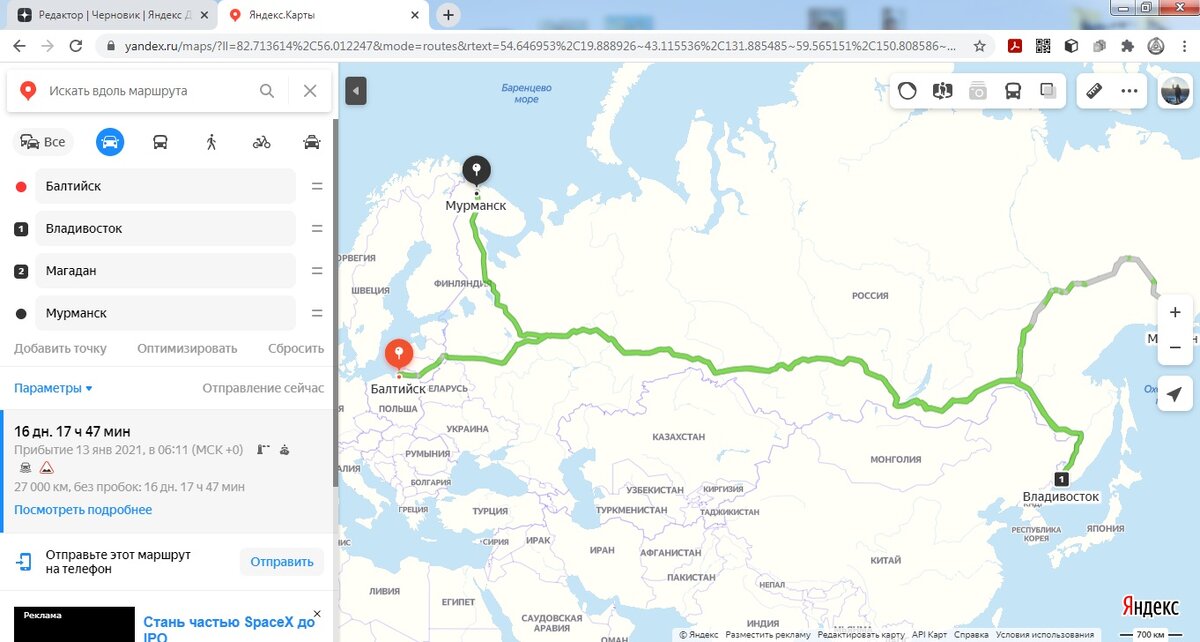 Когда определялся с автомобилем, теперь прокладываю сам маршрут