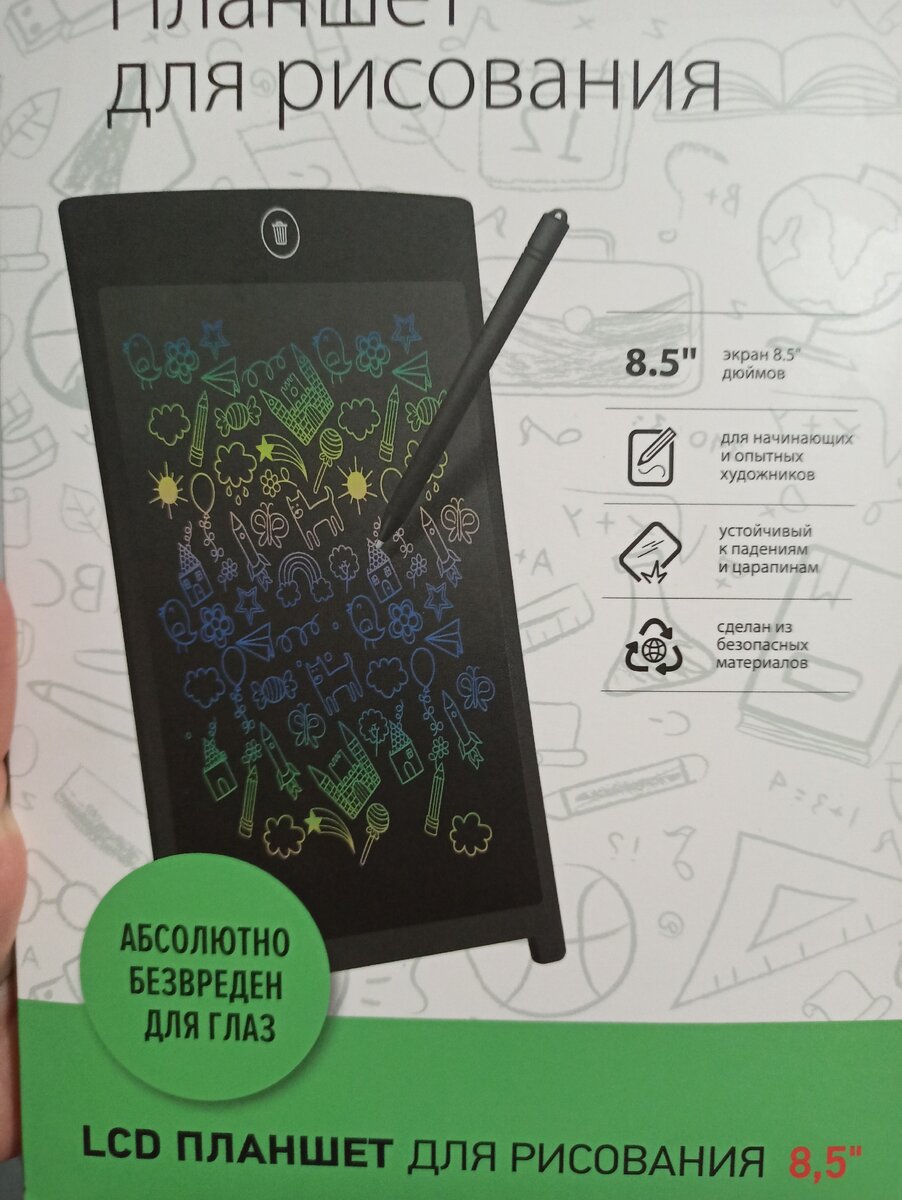 Все дети любят рисовать, поэтому графический планшет - отличная идея для подарка, но вот без минусов конечно не обошлось. У детей есть большой мольберт для рисования, также маленькие магнитные со стирающейся полосой ( проводишь в сторону и рисунок стирается, потом можно рисовать снова), графический планшет что-то наподобие этого мини мольберта, но с гораздо лучшей детализацией, рисуете специальной ручкой в комплекте или любым твердым предметом, рисунок проявляется от нажатия на экран, затем нажимаете на кнопку с изображением корзины для мусора, изображение удаляется и можно снова что-то писать и рисовать. Идея очень хорошая! Плюс в том, что на самом деле экономится бумага, рисунок получается достаточно чёткий, производитель обещает защиту для глаз (зрение таким планшетом не испортить). Минусы - это в первую очередь то, что рисунок нельзя сохранить, если на бумаге например лучшие рисунки можно оставить на память, но в принципе это решаемо, т. к. понравившийся рисунок можно сфотографировать на телефон, второе, что не понравилось - это яркость, конечно защита для глаз-это хорошо, но всё же хотелось увидеть более насыщенные цвета (у нас планшет многоцветный H8SC, такие когда-то продавались в магазине "Светофор", я приобрела его на сайте магазина " Озон"), третье - это цена, по акции составила более пятиста рублей, без акции - тысяча и выше, ну не стоит это устройство таких денег, максимум рублей триста его адекватная стоимость.