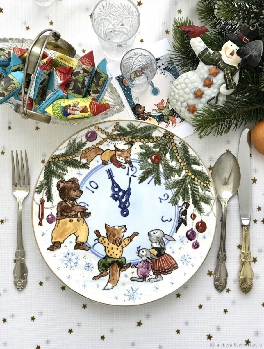 Под такую посуду сразу захотелось сервировать стол в стиле того времени – хрустальные фужеры, мельхиоровые ножи и вилки, хрустальная ладья. На мое счастье в ближайшем гастрономе нашлись шоколадные конфеты «Мишка косолапый», мандарины. Пока снимала стол, попробовала конфеты. Все-таки в детстве они были намного вкуснее...