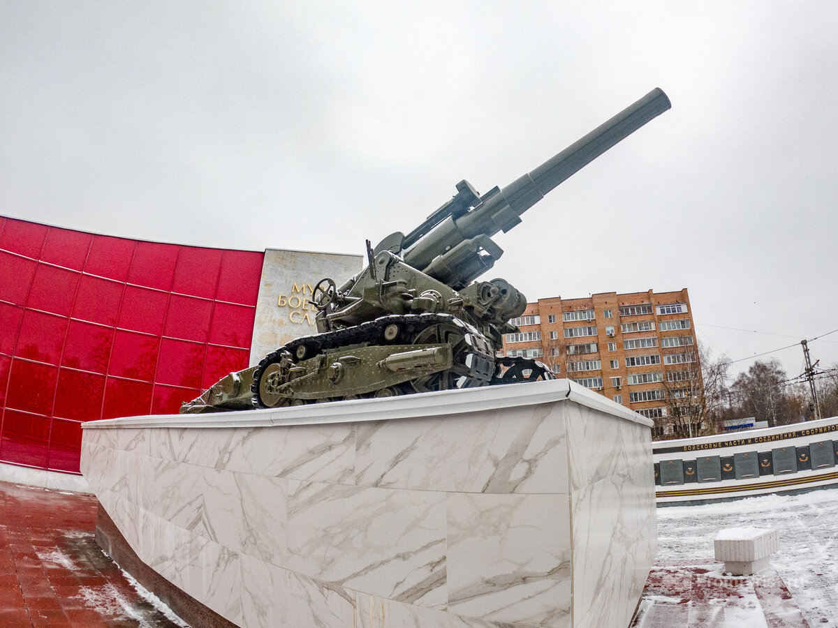Если отъехать недалеко от Коломенского кремля, на постаменте можно увидеть большое орудие на гусеницах. А если смотреть издалека, так и вовсе она похожа на причудливый формы танк. Коломчане её так и называют, «Пушка».