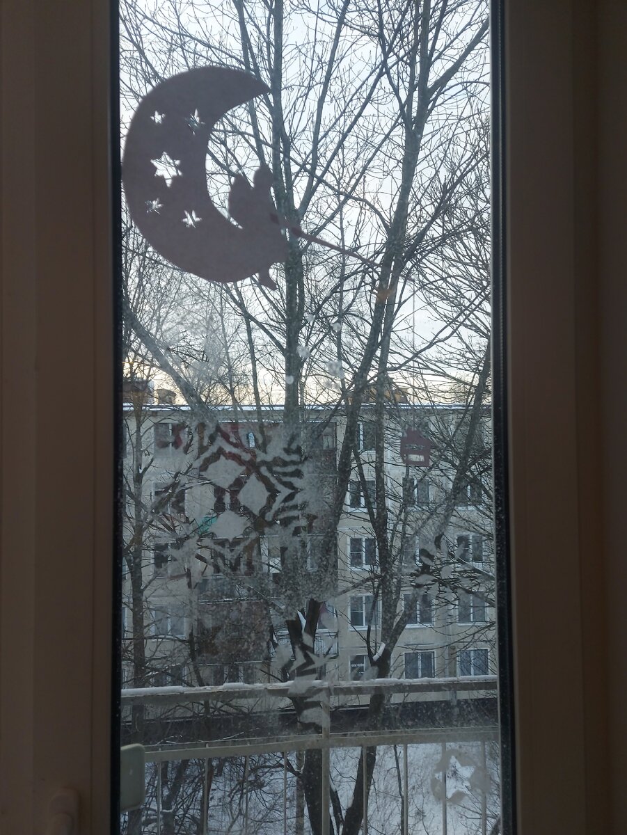 Вариантов украсить окно к Новому Году множество, начиная от снежинок и наклеек заканчивая яркими гирляндами. Но что же делать если совсем нету денег на украшения? Выход есть!