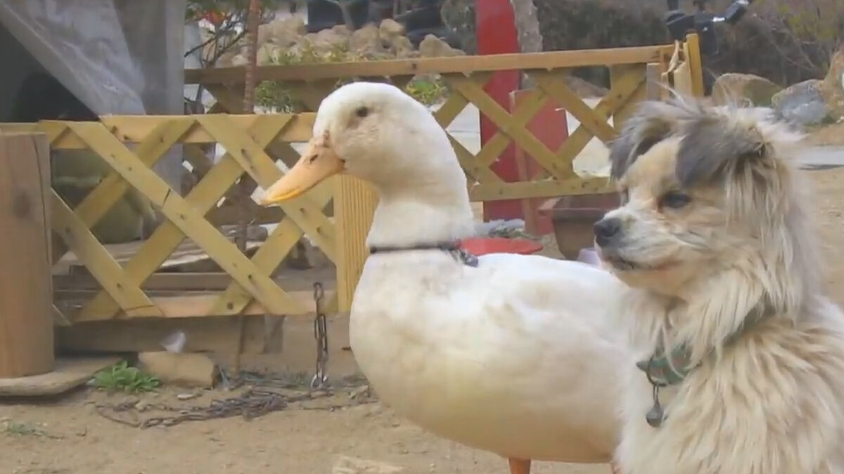 Необычная дружба удивила всех жителей в деревушке находящийся в японском городке. Утка и собака уже многие годы постоянно находятся вместе, и их не может разлучить никто.