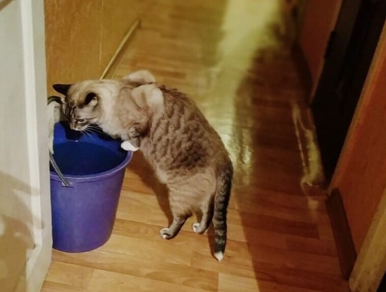 Кот Беляшик где-то лазил и весь угваздакался. В пыли, с луковой шелухой за ухом он предстал перед кошкой Чернухой. Та, сначала, на материнских инстинктах давай его вылизывать, а потом на тех же самых инстинктах, но под другим углом, устроила Белке взбучку. В итоге, Беляшик вылизывался сам, упорно и настойчиво. И заслуженно получил звание "Самого чистого кота"!