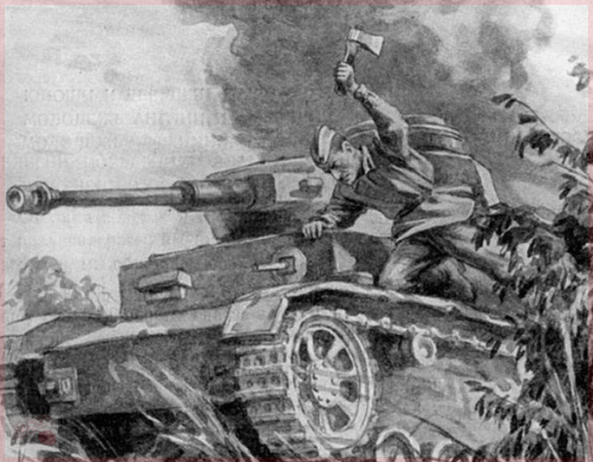 Взяв винтовку и топор, Иван ждал, пока солдаты начнут выходить из танка, чтобы дозаправить его. Команда, увидев движущегося к ним советского солдата с топором,