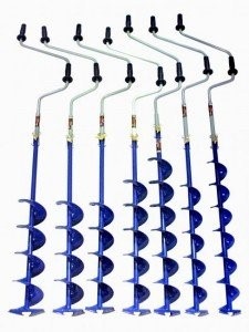 А инструменты зарубежного производства изготовлены таким образом, что рукоятки бура расположены по двум сторонам, и это позволяет рыбаку производить бурение обеими руками, облегчая нагрузку и уменьшая потраченное время.