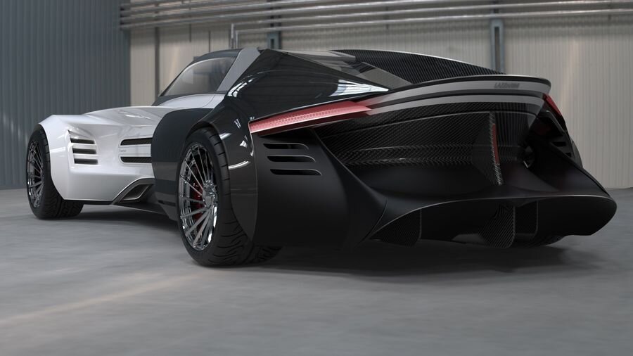 Lazzarini One, судя по всему, пока и вовсе существует лишь в виде виртуального прототипа, пусть и детально проработанного. Кузов длиной 6260 мм изготовлен из углепластика и вмещает четырёх человек. Чтобы попасть в салон, нужно не только открыть широченные двери, но и поднять вверх огромный стеклянный колпак.