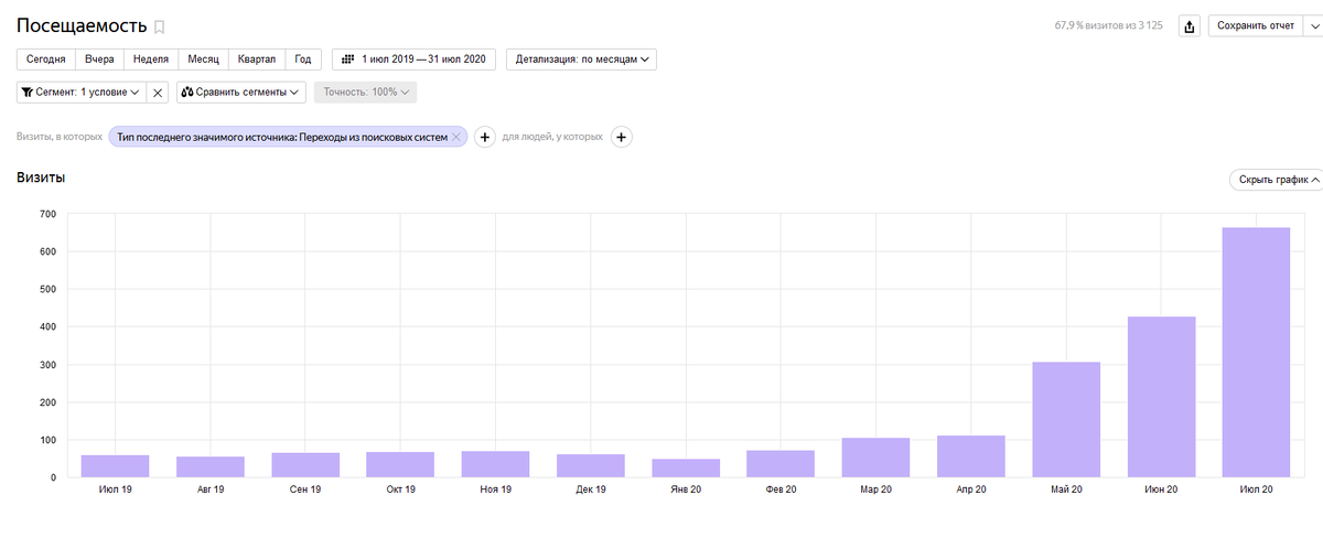 Рост посещаемости с ПС в 6 раз (с 61 до 664 визитов)