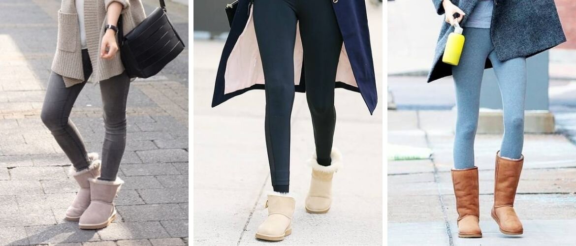 Классические угги прекрасно смотрятся с леггинсами, джинсами скини, мом и плаццо. В моде совмещение в одном образе разных тканей и фактур, поэтому к мягким замшевым уггам можете смело подбирать кожаные леггинсы.