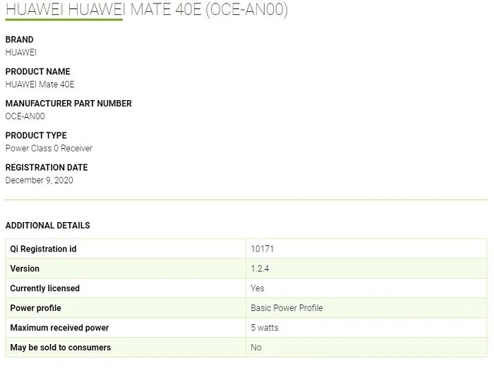 Смартфон Huawei Mate 40 был представлен в октябре 2020 года. Спустя два месяца в базе данных Wireless Power Consortium (WPC) обнаружилось устройство с модельным номером OCE-AN00 (у Huawei Mate 40 модельный номер OCE AN10).