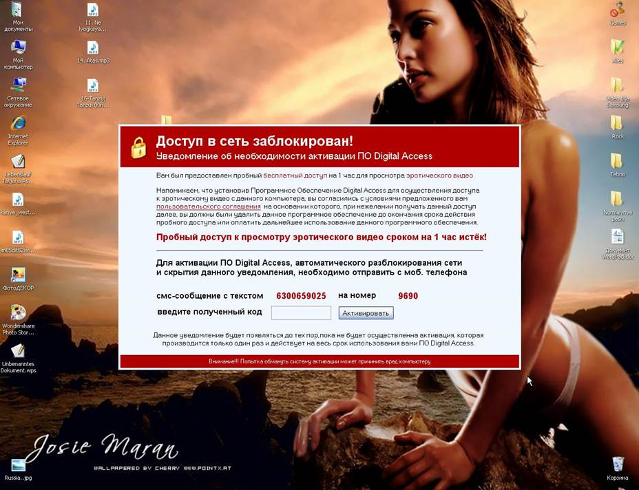Если вдруг Вы никогда не сталкивались, то вкратце расскажем, по какой схеме работает порно-баннер. Вы выключаете свой компьютер, а при следующем запуске на Вашем рабочем столе возникает виджет эротического или порнографического содержания, который невозможно убрать. Как правило, этот же виджет при попытке хоть как-то с ним провзаимодействовать предлагает Вам отправить СМС на номер, и якобы после этого Вам придет ответное СМС с кодом, который позволит Вам избавиться от баннера. Но СМС не приходит, счет Вашего мобильного телефона приобретает отрицательное значение, а на рабочем столе по-прежнему висит нечто, что заставляет Вас краснеть.