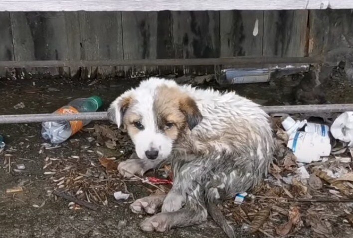 Однажды утром мне позвонила знакомая с просьбой помочь ей отвезти бездомного щенка в клинику. Я, конечно, согласилась. Но то, что я увидела, повергло меня в шок. Долго ехали до места, где находилась собачка. Приехав, увидела – щенок лежал под скамейкой, задняя часть тела была мокрая и подогнута как-то неестественно.