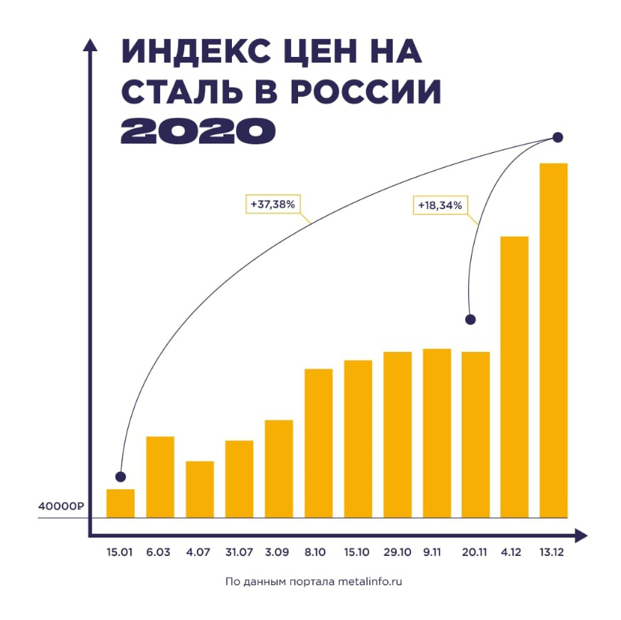 С начала текущего года отмечается тренд повышения стоимости стали. По данным от портала МСС, с начала года по 19 декабря ценовой индекс российского рынка вырос на 60%. При этом ситуация с конца ноября может характеризоваться термином «ценовой шок». За две первые недели декабря стоимость стального проката разных марок в среднем подскочила почти на 20%, предыдущая неделя свидетельствует об ускорении роста — +16,1% за семь дней. Эксперты отмечают, что тенденция роста может продолжаться ещё несколько месяцев, хотя стоимость проката уже превысила самые высокие уровни, которые отмечались за последние годы.