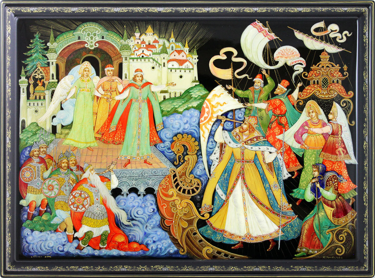Но мать с сыном не погибли, а попали на волшебный остров. Там они начали править, а Гвидон вырос красивым, мужественным и справедливым царем. Спасенная им Царевна лебедь помогла трижды увидеть отца и подарила три чуда…