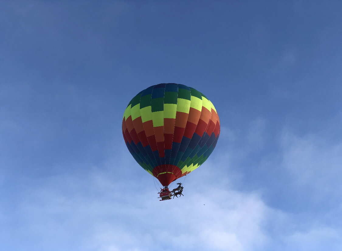 Над Нижним Новгородом сегодня пролетел Дед Мороз — сани, запряженные оленями поднял в небо воздушный шар.