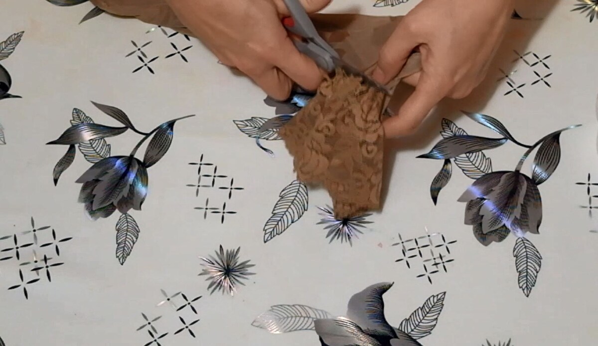 Отрезаю кружево от чулка.