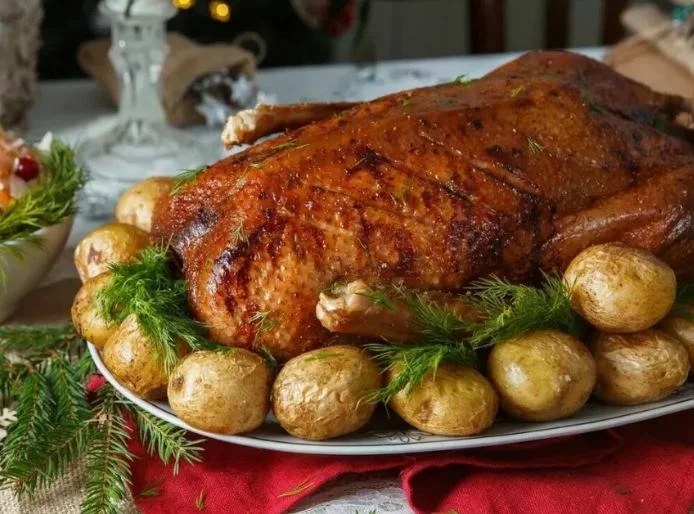 Запекаю сразу две птицы (гуся и курицу), но на стол 31 числа будет подаваться только гусь. А вот курочку припасу на 1 января.