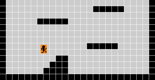 Стало быть, проверка относительно проста. Надо только вычислить, в какой клетке пространства находится персонаж, и проверить, занята эта клетка или нет. Чтобы узнать координаты клетки в матрице, нужно координаты персонажа разделить на размер клетки без остатка: