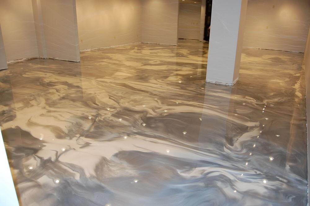- оригинальный дизайн. С помощью эпоксидной смолы можно добиться на полу эффекта трехмерного изображения и фотопечати, глянцевой или текстурной поверхности различной окраски (включая многоцветную);
