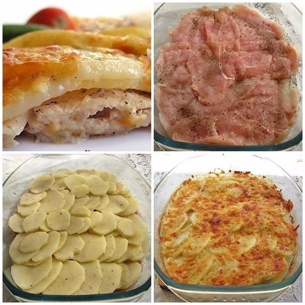 Филе курицы нарезать толщиной 1 см, отбить слегка, выложить в форму так, чтобы она покрыла все дно. Посолить, поперчить. Картофель нарезать толщиной 2 мм, посолить, поперчить, перемешать. Выложить на филе. Сверху полить майонезом. И посыпать тертым сыром. Накрыть фольгой и в разогретую до 180-200 С духовку на 1 час. Через час убрать фольгу и дать корочке зарумяниться.