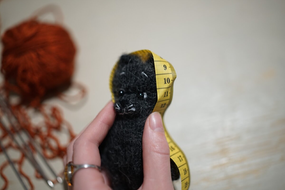 Измеряю длину от шеи через голову и до шеи с противоположной стороны. У меня это 12 см. Набираю петли до нужной длины (у меня 28 петель).