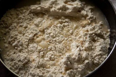 7. Разогрейте сковороду и положите на нее лепешку. Готовьте лепешку на среднем огне 30-40 секунд, а затем переверните ее на другую сторону. Поджаренную сторону смажьте небольшим количеством масла или гхи и снова переверните. Теперь смажьте вторую сторону. Готовьте лепешку, переворачивая несколько раз, до появления поджаристых точек на ней.