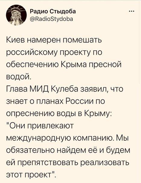 Вашему вниманию, уважаемые товарищи читатели, представляется попытка нациста, занимающего пост министра иностранных дел бандеровской Украины, уморить жителей Крыма жаждой.