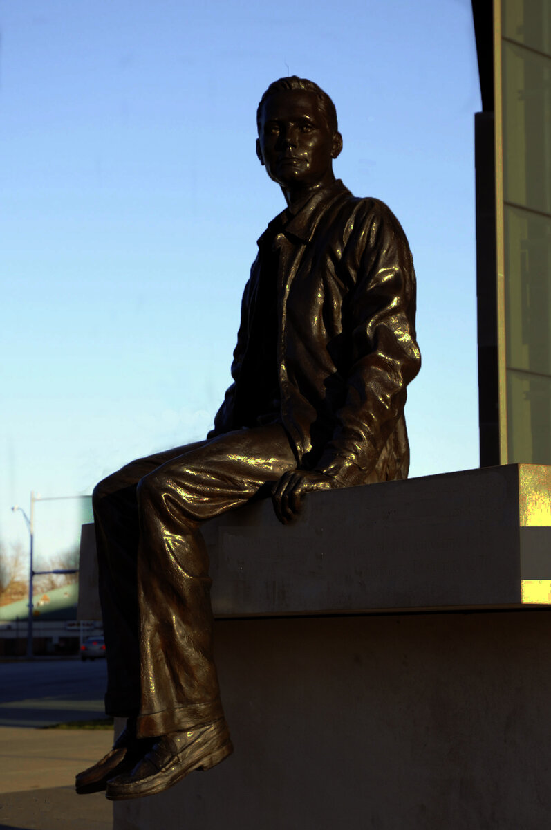 Оказывается, есть такой актёр, за которого весь фильм играли дублёры, и ему поставлен памятник. Известный актёр сидит, задумавшись, на большой каменной плите, свесив ноги, и с загадочной "улыбкой Джоконды" смотрит вдаль.