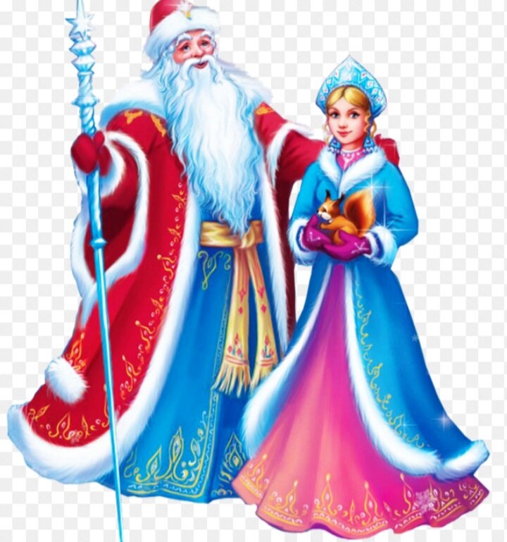 В России к детишкам в Новый год приходит Дед Мороз. Это добрый дедушка с белой бородой. Вместе с ним путешествует и его внучка- Снегурочка.