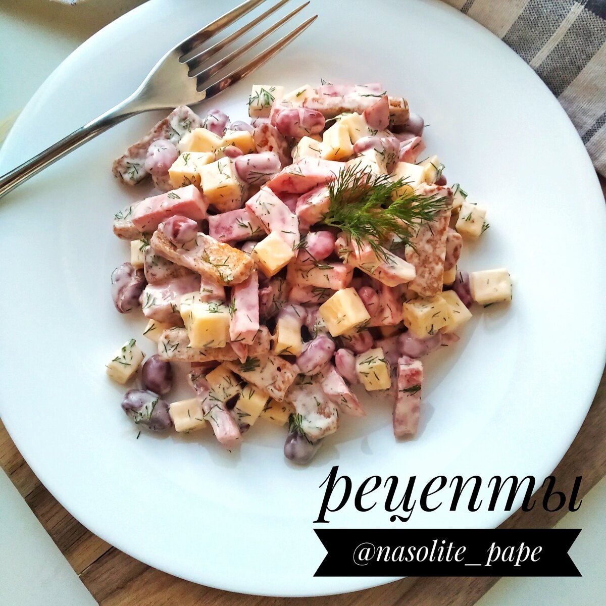 Всё наш салат с фасолью, сыром и колбасой готов😍