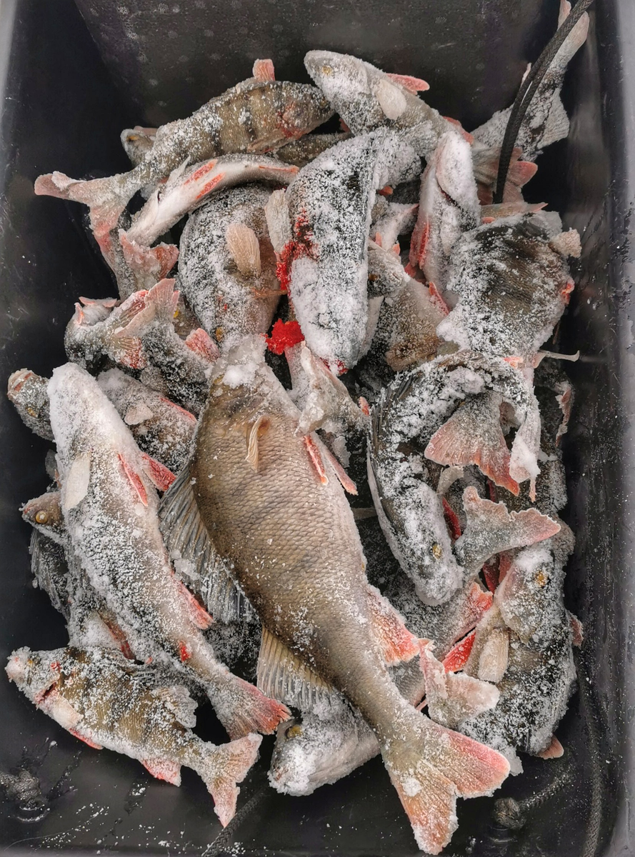 В общем за пару часов за 150 штук получилось, примерно на 20 кг. Рыба разнокалиберная. Таких злых поклевок и окуневой вакханалии наверное и не видал. В какой то момент пошли сходы, тройнику на Корнеевской Пуле пришел капец. Продолжил более крупным клополистиком, получил на старой лунке серию из дюжины хороших окуней. На какой то миг показалось, что размер блесны сработал на укрупнение. Хз.
