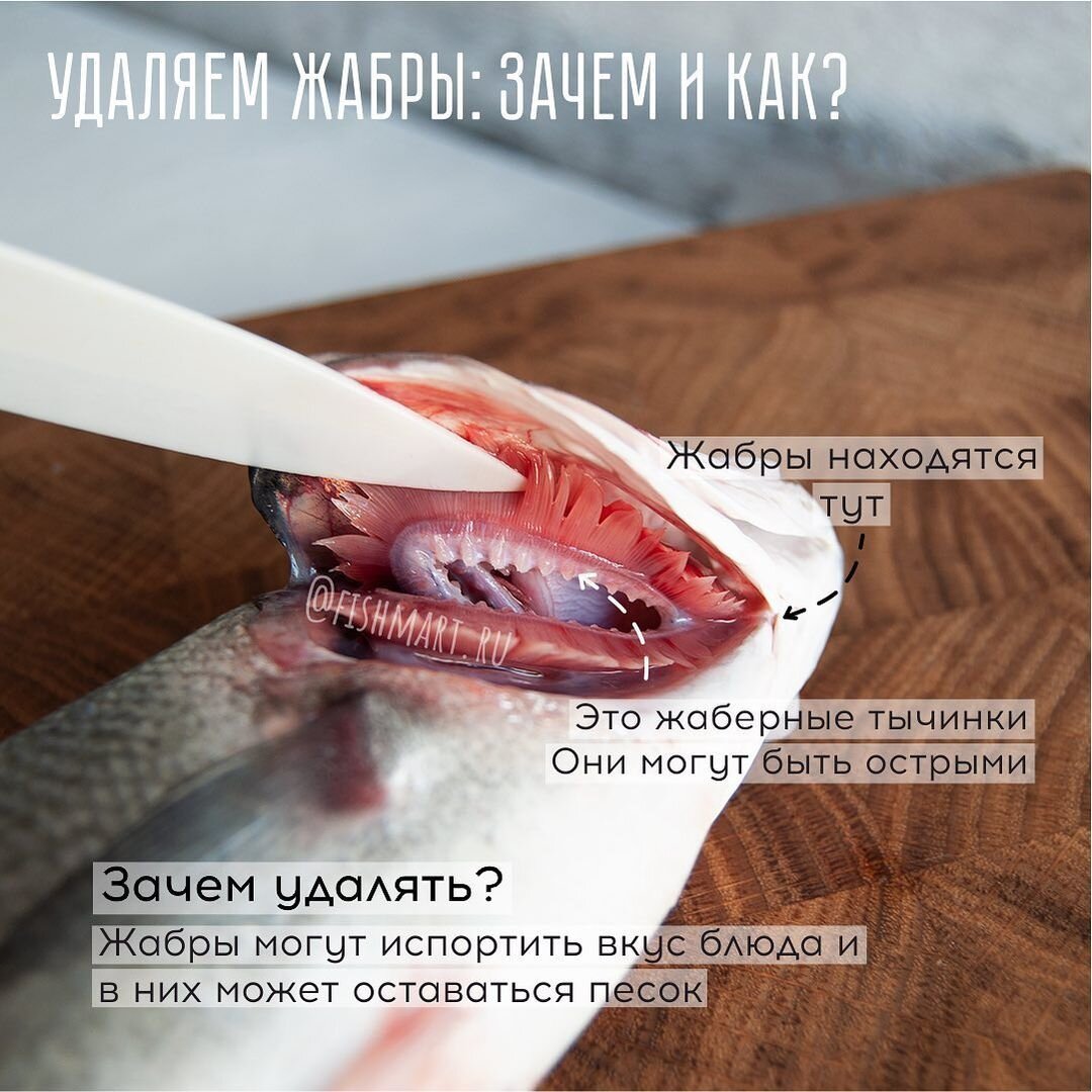 1. Жабры - источник песка, грязи и излишних бактерий, поэтому их мы удаляем их всегда. Блюдо, приготовленное с жабрами, может горчить.